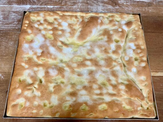 La focaccia dolce La focaccia dolce, un impasto fatto con: farina tipo 0, lievito, acqua, uova, margarina, zucchero, spolverata con altro zucchero, una lunga lievitazione le conferisce un’elevata sofficità, gustosa, dal sapore di brioche buona da gustare semplice o farcita con spalmabili o marmellate, ideale per colazione ma anche come […]